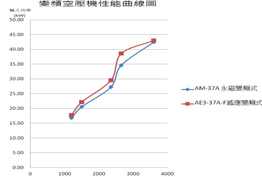| 空壓機(jī)型式 | 使用永磁馬達(dá)變頻空壓機(jī) | 一般感應(yīng)馬達(dá)變頻空壓機(jī) |