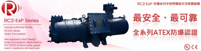 漢鐘RC2-ExP防爆系列半密閉螺旋式冷媒壓縮機(jī),是全球第一臺(tái)取得歐盟ATEX 95(94/9/EC),以及臺(tái)灣CNS-3376雙防爆認(rèn)證壓縮機(jī),再次證明漢鐘於壓縮機(jī)技術(shù),獨(dú)步全球的地位