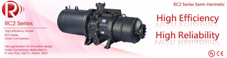 RC2 Series Features As Below Advanced 5-to-6 patented Screw Rotor Profile designed to ensure high capacity and efficiency in all operating conditions Simple and robust design which provides high reliability and low vibration and noise level High efficiency motor. Premium grade low-loss core steel with special motor cooling slot and refrigerant guide vane which pilot the cold suction refrigerant gas through the motor provides the highest operating efficiency possible no matter how strict operating conditions are